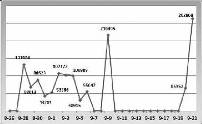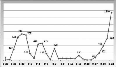 “楊達才事件”微博傳播日變化趨勢圖 (單位:篇數(shù) 數(shù)據(jù)來源:新浪微博)