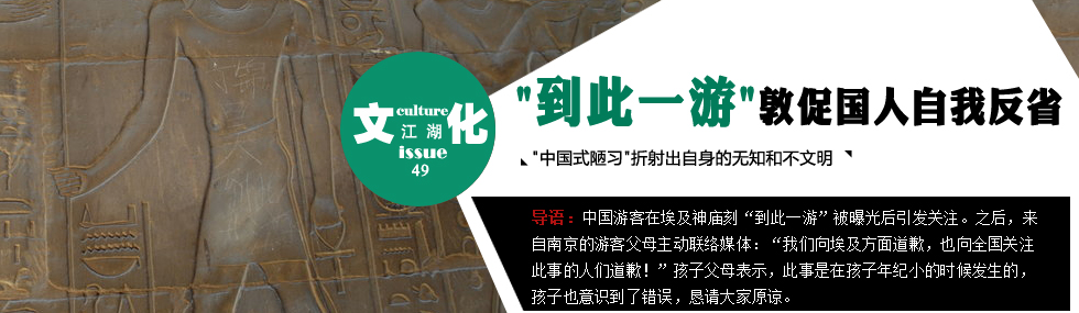 “在埃及最難過的一刻,無地自容!本W(wǎng)友“空游無依”的一條微博迅速引發(fā)熱議,他在埃及盧克索神廟的浮雕上看到有人用中文刻上“丁錦昊到此一游”,為國人輕易毀壞千年文物的行為感到震驚和羞愧。許多網(wǎng)友對此均表示氣憤,大呼“丁錦昊,你要火了”。 |
