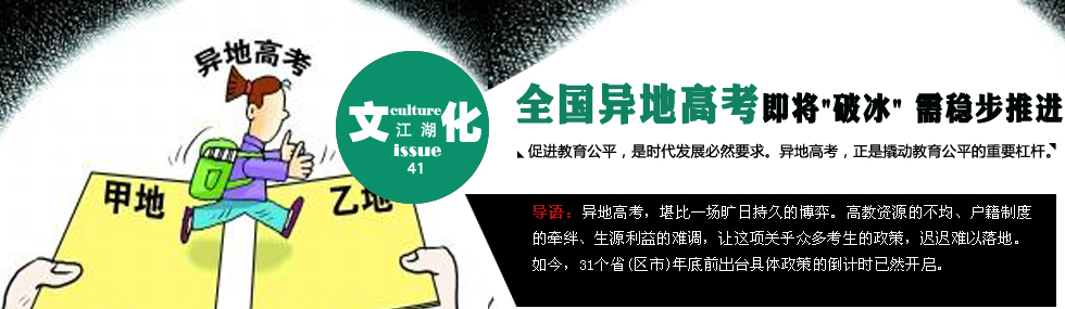 11月,各省份陸續(xù)進(jìn)入了2013年高考報(bào)名階段,明年隨遷子女是否能就地高考,成為一個(gè)迫切的問題。本月初,黑龍江省成為首個(gè)明確2013年異地高考具體條件的省份,比之前明確2014年實(shí)行“異地高考”的山東省和福建省更提早了一步。對(duì)照不久前教育部針對(duì)“異地高考”三個(gè)方面“準(zhǔn)入條件”(家長(zhǎng)、學(xué)生、城市條件),此次黑龍江公布的條件簡(jiǎn)化了許多。如“家長(zhǎng)條件”僅限于“有合法職業(yè)和穩(wěn)定住所”兩項(xiàng),并沒有包含“交了各種保險(xiǎn)”的社保條件,而對(duì)“學(xué)生條件”也僅要求了“連續(xù)就讀3年以上”。至于“城市條件”則完全沒有涉及。黑龍江設(shè)立的“門檻”被認(rèn)為是一個(gè)較為寬松的尺度。有學(xué)者表示:“這種要求使現(xiàn)實(shí)中出現(xiàn)高考移民的可能性也比較小。”