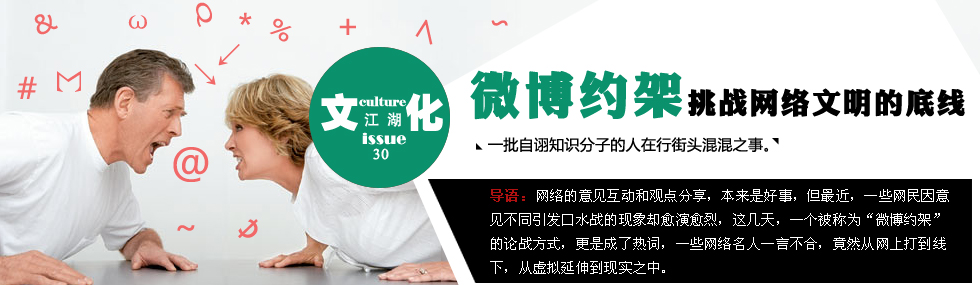 因政治觀點(diǎn)分歧而“約架”,這是中國少數(shù)網(wǎng)絡(luò)知識(shí)分子最粗鄙的表現(xiàn)之一,也是微博推動(dòng)中國民主進(jìn)程泥沙俱下帶來的一塊臟東西。無論“約架”或“應(yīng)架”,都與“勇敢”不相干,也與“風(fēng)度”或“敢作敢當(dāng)”風(fēng)馬牛不相及。