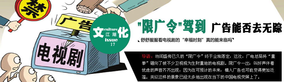 各大衛(wèi)視恐后續(xù)有“招” 遏制廣告亂象還當(dāng)未雨綢繆 “限廣令”一出,損失慘重的各大衛(wèi)視必定后續(xù)有“招”,具體如何應(yīng)對尚不得知,我們在多方猜測的同時(shí),也希望相關(guān)負(fù)責(zé)人能隨著“限廣令”的出臺(tái)未雨綢繆,醞釀相關(guān)的舉措迎接后續(xù)的一系列蝴蝶效應(yīng)。而廣電總局相關(guān)負(fù)責(zé)人今年年初就曾表示,有進(jìn)一步規(guī)范電視劇植入廣告的想法。而植入式廣告的臭名遠(yuǎn)揚(yáng)早已經(jīng)讓人深惡痛絕,限廣令一出,植入廣告的猛增也正是廣大網(wǎng)友所最擔(dān)心的。