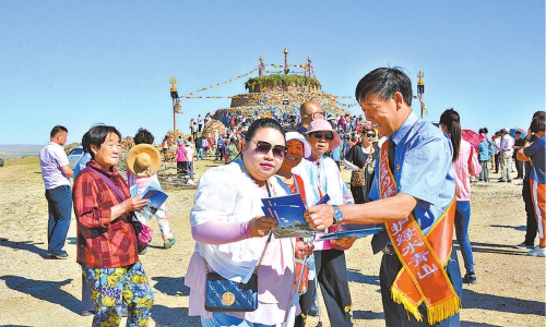 潘志榮向牧民發(fā)放法律知識宣傳冊。王媛攝