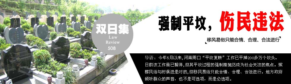 自明年1月1日起,違規(guī)土葬、亂建墳?zāi)箤⒉辉僭试S民政部門強(qiáng)制平毀。而在此之前,河南省周口市從今年年中開始開展了大規(guī)模的“平墳復(fù)耕”運(yùn)動(dòng),據(jù)當(dāng)?shù)卣块T披露,截至目前“已平遷200多萬墳?zāi)?復(fù)種耕地近3萬畝”。周口“平墳運(yùn)動(dòng)”自實(shí)施伊始就遭遇了民眾不同程度的抵制,因此在平墳過程中采取了簡(jiǎn)單粗暴的方式,出現(xiàn)了強(qiáng)制平遷村民墳?zāi)沟那闆r。