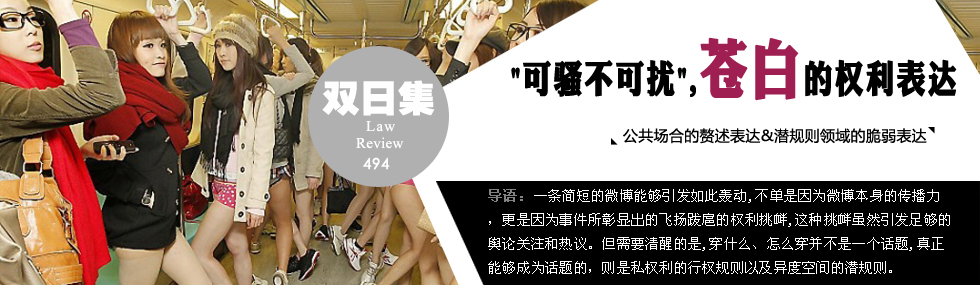 的確,如何穿衣是一個(gè)人的自由,屬于私權(quán)范圍,國(guó)家和社會(huì)都無權(quán)去評(píng)價(jià)。但若進(jìn)入公共生活領(lǐng)域,張揚(yáng)的私權(quán)要受到公共利益的制約,這是社會(huì)實(shí)踐的必然選擇。