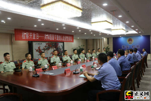 7月30日,江蘇省海安市檢察院舉行“檢察開放日——共和國最可愛的人走進(jìn)檢察院”活動,邀請武警海安中隊官兵走進(jìn)該院,參觀體驗檢察工作。