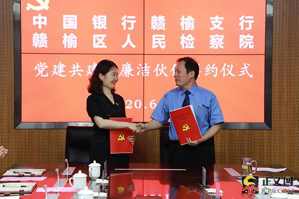 正義網(wǎng)連云港6月19日(通訊員 孫成強(qiáng) 盛磊)為創(chuàng)新開展黨建工作,6月17日,江蘇省連云港市贛榆區(qū)人民檢察院機(jī)關(guān)委員會與中國銀行贛榆支行黨總支在贛榆區(qū)檢察院簽訂黨建共建暨廉潔伙伴協(xié)議書。雙方確定專人負(fù)責(zé)黨建共建工作,每年共同制定黨建共建活動計劃,協(xié)商確定具體合作事宜,并定期開展活動,將黨建與廉政建設(shè)融入業(yè)務(wù)、融入基層,推動雙方在組織共建、隊伍共育、資源共享、文明共創(chuàng)、廉潔共行等方面實現(xiàn)共贏和新發(fā)展。