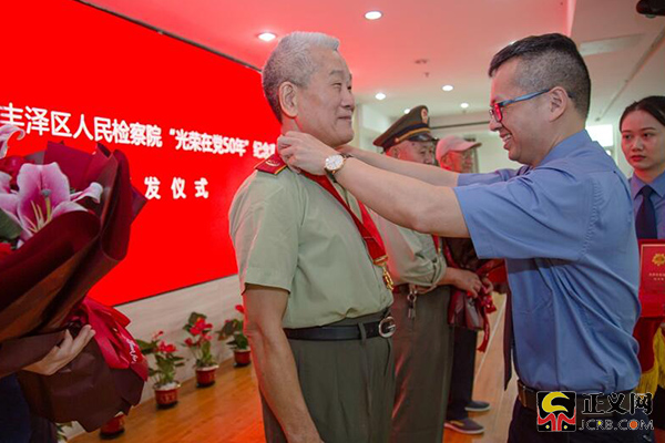 正義網(wǎng)泉州7月7日電(通訊員 王榮燦)近日,福建省泉州市豐澤區(qū)人民檢察院“憶初心 頌黨恩 擔(dān)使命”主題黨日活動,該院林志銘檢察長向黨齡超過50年的老黨員頒發(fā)“光榮在黨50年”紀念章,并組織開展慶祝建黨100周年系列活動,進一步增強使命感、歸屬感、榮譽感,引領(lǐng)廣大黨員干警守初心、擔(dān)使命,再創(chuàng)檢察輝煌。