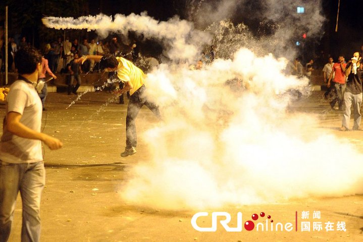 2011年6月29日,埃及首都開羅解放廣場爆發(fā)大規(guī)模流血沖突,數(shù)以千計的游行民眾向警察和安全部隊士兵投擲石塊,后者則以警棍、催淚瓦斯、眩暈彈和橡皮子彈等加以還擊,并朝天鳴槍以驅(qū)散游行者。