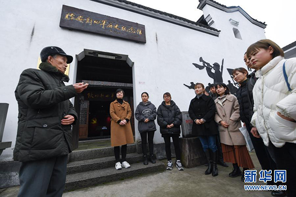 3月18日,在杭州市臨安區(qū)板橋鎮(zhèn)的臨安新四軍歷史紀(jì)念館,90歲的孟永迪老人(左一)在給鄉(xiāng)鎮(zhèn)的入黨積極分子講述革命歷史和他自己參加過的解放戰(zhàn)爭的親身經(jīng)歷。