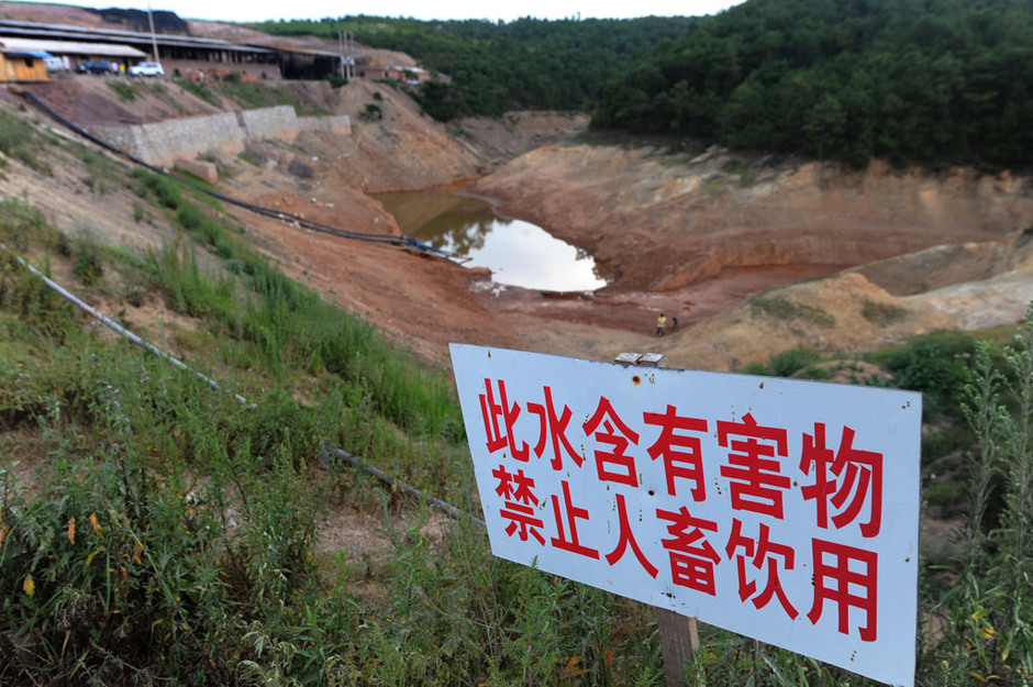 曾經(jīng)被污染的叉沖水庫(8月14日攝)。云南曲靖有5000噸鉻渣倒入水庫,致使水庫致命六價鉻超標2000倍。事后云南將30萬立方米受污染水,鋪設管道排入珠江源頭南盤江。由于化工廢渣的非法丟放,曲靖市麒麟?yún)^(qū)越州鎮(zhèn)村民賴以生存的水源——叉沖水庫在過去幾個月中遭受致命侵襲。在雨水的沖刷和滲透下,總量達5000余噸的重毒化工廢料鉻渣,把水庫變?yōu)榭植赖摹岸驹础。隨后,經(jīng)過當?shù)匾幌盗械某恋砼c稀釋作業(yè),致命“毒水”被直接排放到水庫下游的珠江源頭南盤江中。