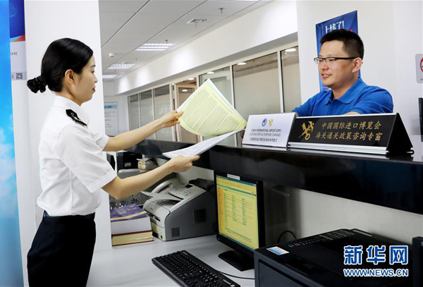 9月26日,海關(guān)工作人員接收報關(guān)公司辦事員遞交的依維柯貨車展品的報關(guān)材料。當(dāng)日,一輛由意大利拉斯佩齊亞港裝船,經(jīng)海路運抵上海洋山港的依維柯貨車,在上海會展中心海關(guān)通過ATA單證冊方式完成報關(guān)手續(xù),成為第二屆中國國際進(jìn)口博覽會首票通關(guān)展品。據(jù)統(tǒng)計,目前已有來自150多個國家和地區(qū)的3000多家企業(yè)報名參展第二屆進(jìn)博會,相關(guān)商業(yè)展規(guī)模達(dá)30多萬平方米。