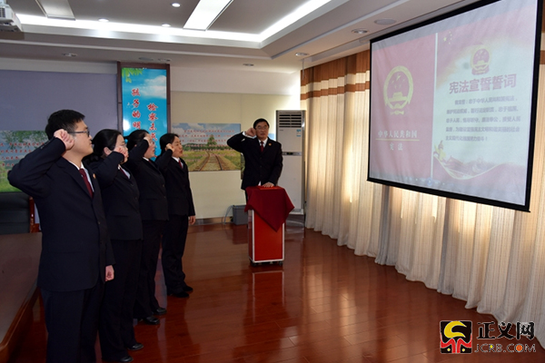 宣誓后,該院黨組成員、政治部主任要求大家強(qiáng)化人民意識(shí)和責(zé)任意識(shí),時(shí)刻維護(hù)憲法和法律的權(quán)威和尊嚴(yán),把誓言時(shí)刻銘記于心,堅(jiān)定不移為憲法規(guī)定的黨的崇高事業(yè)、憲法寫下的人民權(quán)力而不懈奮斗,堅(jiān)定不移做憲法的忠實(shí)崇尚者、嚴(yán)格遵守者、自覺運(yùn)用者和堅(jiān)定捍衛(wèi)者!