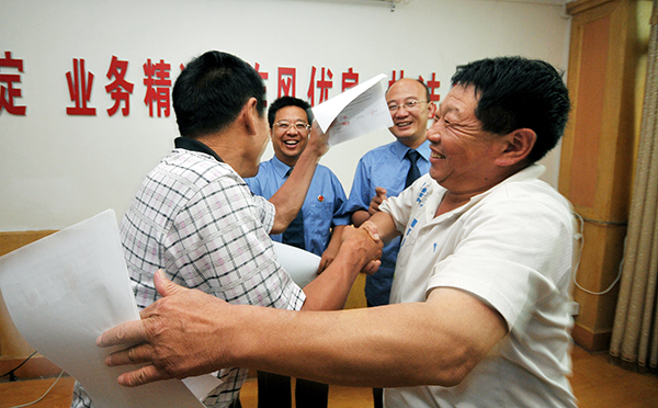 原本親如兄弟的兩個合伙人,因經(jīng)濟糾紛互相糾纏了幾年之久,身心疲憊的老哥倆在江蘇省徐州市賈汪區(qū)檢察院辦案檢察官細致耐心地引導(dǎo)調(diào)解下,最終達成和解協(xié)議。2012年7月26日,在辦案檢察官的鼓勵下,兩人簽訂協(xié)議后相互擁抱,和好如初,并向檢察機關(guān)表示由衷的感謝:“因為你們的耐心和執(zhí)著,幫我們化解了多年的恩怨,也徹底解開了我們老哥倆多年的心結(jié)!”高剛 攝