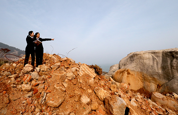 2019年2月22日,山東省青島市嶗山區(qū)檢察院接到群眾反映,泉心河入海口海灘長期堆放廢棄建筑垃圾,破壞了前海海灘,嚴重影響海洋生態(tài)環(huán)境和嶗山自然保護區(qū)環(huán)境。該院負責公益訴訟工作的檢察官到現(xiàn)場查看情況、取證。黃瑩 攝
