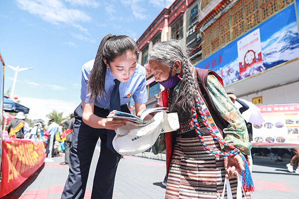 以服務(wù)群眾點滴需求為出發(fā)點,以解決群眾實際問題為落腳點。在政法隊伍教育整頓期間,西藏自治區(qū)檢察院始終堅持靠前一步、主動作為,堅持從群眾利益出發(fā)、向人民滿意而行,積極回應(yīng)人民群眾法治新需求新期盼,扎實推動“我為群眾辦實事”實踐活動走深走實。2021年6月30日,院里懂“雙語”的干警上街頭、進社區(qū),用各民族群眾聽得懂的語言開展普法宣傳,用接地氣的法律服務(wù)化解矛盾糾紛,引導(dǎo)各族群眾牢固樹立法治思維、不斷增強法治意識、切實養(yǎng)成法治觀念。張超 攝
