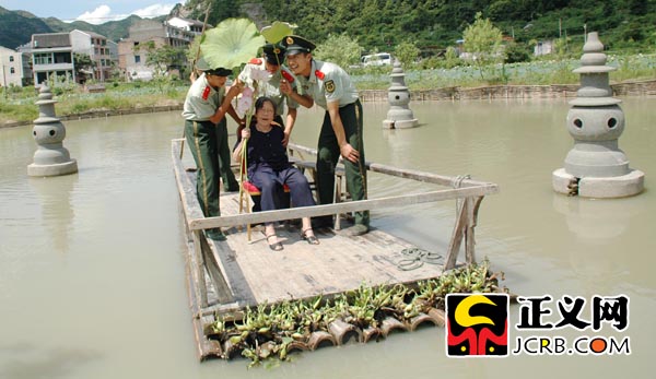 武警浙江省總隊(duì)溫嶺市中隊(duì)的官兵們,幫助了93歲的孤寡老人林文錦在溫嶺家門口, 實(shí)現(xiàn)欣賞荷花, 游"西湖三潭印月" 的愿望。
