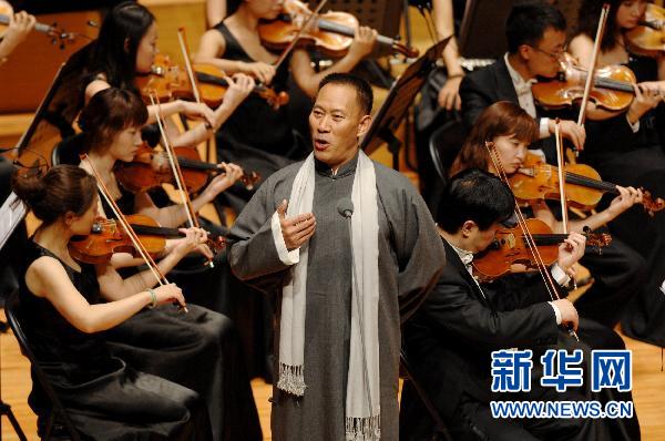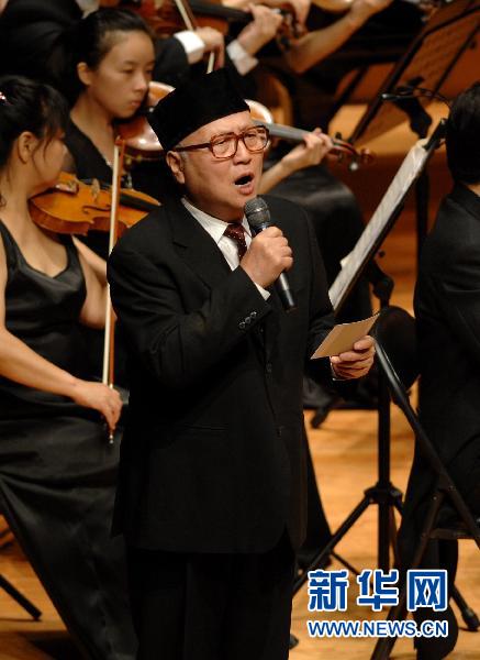 6月30日晚,著名演員吳京安朗誦李大釗作品《新紀(jì)元》。當(dāng)日,為慶祝中國共產(chǎn)黨成立90周年,《獻(xiàn)給黨的生日——七月》朗誦交響合唱音樂會(huì)在西安音樂廳上演。本次音樂會(huì)匯集了著名表演藝術(shù)家許還山、張家聲、吳京安以及著名配音演員方明、丁建華、喬榛等,一批愛國文學(xué)代表作品如毛澤東的《沁園春·雪》、李大釗的《新紀(jì)元》、方志敏的《可愛的中國》等在這場音樂會(huì)上得到完美演繹。新華社記者 李一博 攝