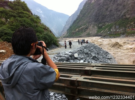 記者在現(xiàn)場看到,滾滾的泥石流侵占了半邊河道,導致岷江取彎道直接沖擊路基,現(xiàn)在己有大型施工車到場,都汶公司馮總表示,現(xiàn)在水太猛,投放四面體會被沖走,計劃炸開一旁山坡開辟臨時便道,目前最終方案還未定。