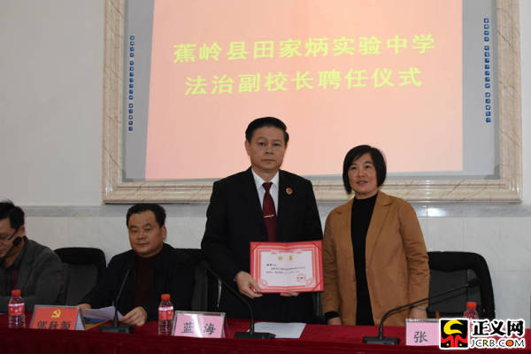 正義網(wǎng)梅州1月2日電(通訊員李紅梅 丘媛鈺)近日,廣東省蕉嶺縣田家炳實(shí)驗(yàn)中學(xué)舉行“法治副校長(zhǎng)”聘任儀式暨法治宣講活動(dòng),廣東省蕉嶺縣檢察院檢察長(zhǎng)藍(lán)海接過縣教育局局長(zhǎng)張慧頒發(fā)的聘書,成為蕉嶺縣田家炳實(shí)驗(yàn)中學(xué)法治副校長(zhǎng)。