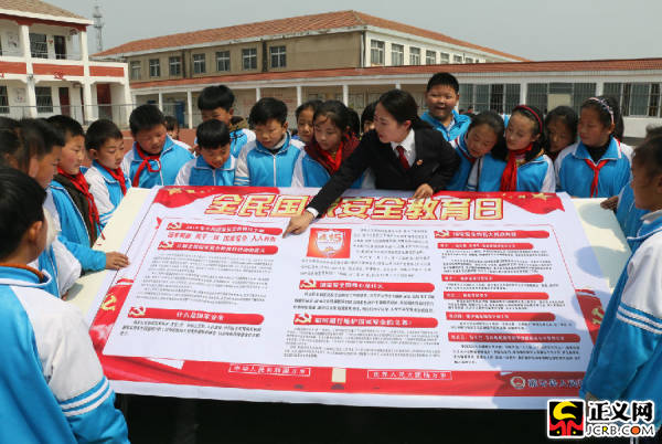在灌云縣四隊鎮(zhèn)中心小學(xué)的操場上,檢察干警擺上了普及《全民國家安全教育日》宣傳教育展板,向師生們宣傳國家安全法,講解保護國家安全相關(guān)知識,回答師生有關(guān)國家安全方面的問題。該校校長關(guān)井泉表示,此次普法教育是一次很好的對小學(xué)生們的法治啟蒙教育,進一步增強了師生們的愛國主義情感和維護國家安全意識。