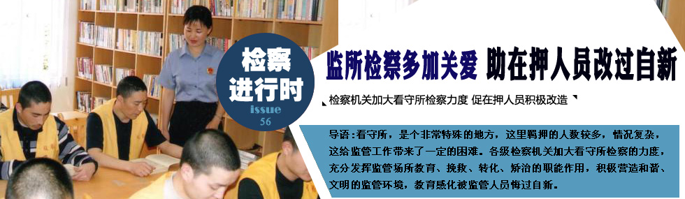 “小唐,你怎么看?”如東縣人民檢察院駐看守所檢察官正在對在押人員唐某某進(jìn)行談話。唐某某思索良久后,向檢察官表達(dá)了對自己罪行的懺悔之意。這是該院駐看守所檢察室全面開展談話活動的創(chuàng)新之舉,讓在押人員主動反思自己罪行,從內(nèi)心審視到外界幫教,從談話了解到全面監(jiān)督,駐所檢察官“你怎么看”式的談話促生在押人員的悔罪意識。[詳細(xì)]