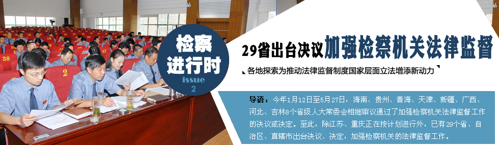 各地決議、決定的出臺(tái)和實(shí)施,實(shí)現(xiàn)了權(quán)力機(jī)關(guān)依法監(jiān)督和支持檢察機(jī)關(guān)依法履職的有機(jī)統(tǒng)一,檢察機(jī)關(guān)的執(zhí)法環(huán)境得到明顯改善。各地的探索也為全國(guó)人大在條件成熟時(shí)修改相關(guān)法律或制定法律監(jiān)督法積累經(jīng)驗(yàn)。這一進(jìn)程正在加速進(jìn)行,且值得期待。