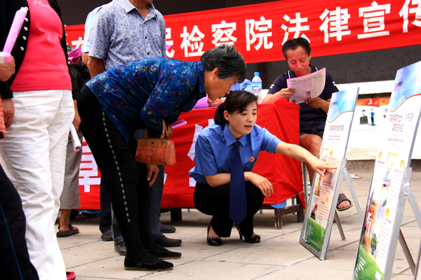 河北省張家口市橋東區(qū)檢察院近日開(kāi)展了以“懲防并舉,保障民生”為主題的法治宣傳活動(dòng),就政府征地、新型農(nóng)村合作醫(yī)療、公共設(shè)施建設(shè)、政府相關(guān)農(nóng)村各項(xiàng)補(bǔ)貼等方面可能涉及到的職務(wù)犯罪進(jìn)行舉報(bào)宣傳,并為群眾提供法律咨詢(xún)。