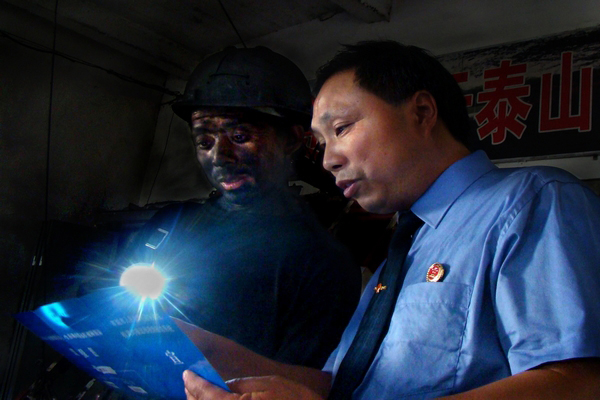 近年來(lái),江西省豐城市檢察院高度重視礦區(qū)職務(wù)犯罪預(yù)防和安全生產(chǎn)。圖為該院河?xùn)|檢察室干警深入轄區(qū)內(nèi)國(guó)有流舍礦開(kāi)展法律知識(shí)和安全責(zé)任專(zhuān)題宣傳。