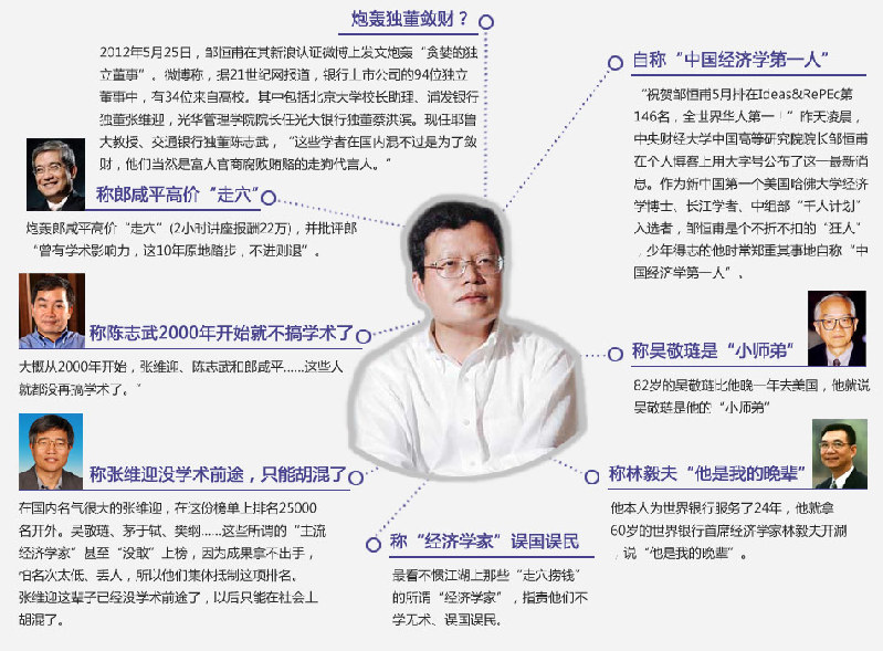 21日,被北大辭退的教授鄒恒甫微博炮轟“北大院長奸淫服務(wù)員”一事,引起社會高度關(guān)注!班u恒甫”則通過微博回應(yīng):我只跟中紀(jì)委談。
