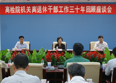 最高人民檢察院今天召開機(jī)關(guān)離退休干部工作三十年回顧座談會。高檢院常務(wù)副檢察長胡澤君出席并強(qiáng)調(diào),要認(rèn)真研究老干部工作面臨的新形勢新任務(wù)新挑戰(zhàn),進(jìn)一步把加強(qiáng)老同志的思想政治工作放在首位,不斷提高老干部工作科學(xué)化水平。胡澤君指出,老干部是黨和國家的寶貴財(cái)富和重要執(zhí)政資源,干部離退休制度關(guān)系到黨和國家興旺發(fā)達(dá)和事業(yè)興衰成敗。
