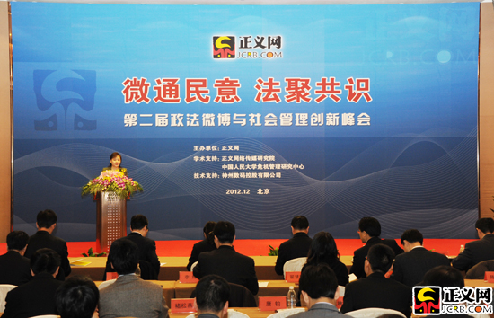 12月8日上午9時(shí),由檢察日報(bào)正義網(wǎng)舉辦的"政法微博與社會管理創(chuàng)新"峰會在北京舉行。本次峰會邀請百余位政法界微博代表,共同探討政法微博如何"織出公信,贏得民心"。