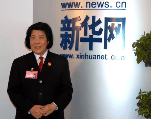 2006年3月尚秀云做客新華網(wǎng)談青少年道德教育 (圖片來(lái)源:新華網(wǎng))