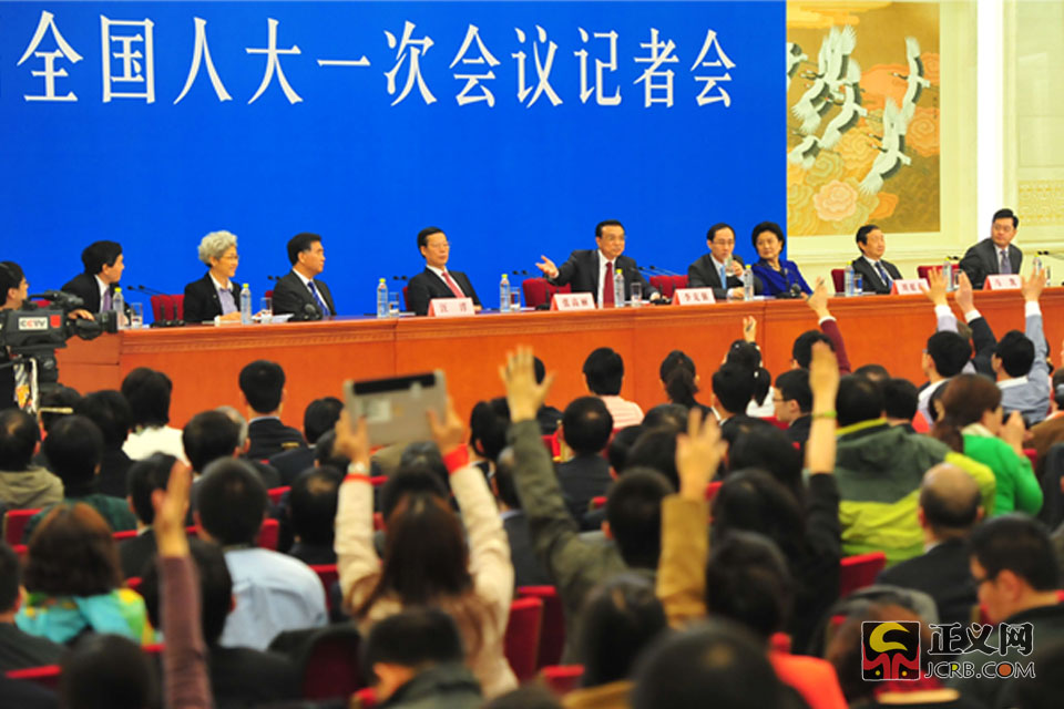 3月17日上午,十二屆全國(guó)人大一次會(huì)議閉幕后,國(guó)務(wù)院總理李克強(qiáng)在人民大會(huì)堂三樓金色大廳會(huì)見(jiàn)中外記者并回答記者提出的問(wèn)題。正義網(wǎng)記者程丁攝