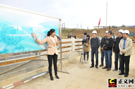 “看得見的正義”中央新聞媒體采訪團參觀河南省南陽市淅川縣渠首工地現(xiàn)場。閆昭 攝