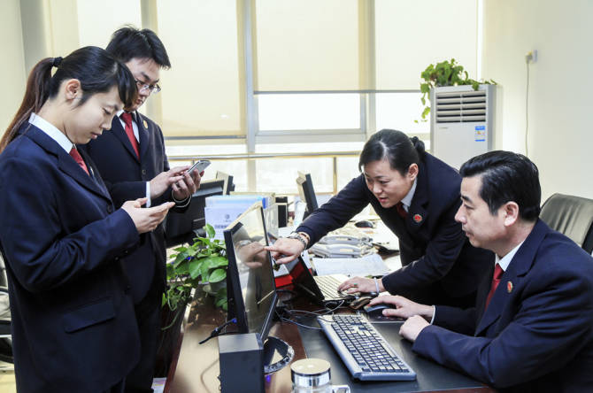 今年3月末,山東省寧陽縣檢察院成立新媒體工作室,搭建起集官方微信、微博、縣電視臺專欄等“三位一體”檢務公開平臺,全方位、多角度地發(fā)出檢察好聲音,傳播法治正能量,讓群眾更直觀了解和感受檢察機關的職能定位、工作成效。圖為該院新媒體的工作人員在瀏覽回復平臺信息。