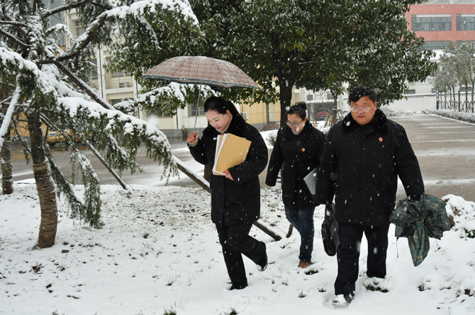 2015年1月28日,安徽省合肥市肥西縣檢察院控申檢察人員對一起群眾信訪案件,踏著大雪進行現(xiàn)場走訪,調(diào)查取證,以便及時答復群眾,引導訴訟,化解矛盾。