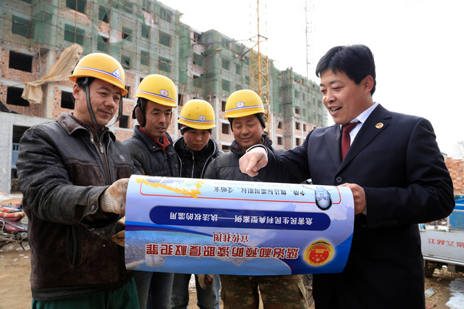 時近年終,徐州開發(fā)區(qū)檢察院繼續(xù)推進“檢察官聯(lián)系重點工程項目”大走訪活動。2月4日,預防科干警來到轄區(qū)大黃山工地現(xiàn)場,以發(fā)放宣傳手冊,現(xiàn)場解答等方式向即將回家過年的農(nóng)民工朋友宣傳勞動法知識。