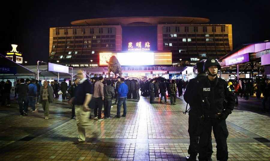 五人持刀,從火車站臨時候車區(qū)開始,經(jīng)站前廣場、售票大廳等地,打出暴恐旗幟,肆意砍殺無辜群眾,致31人死亡,141人受傷,其中40人系重傷。
