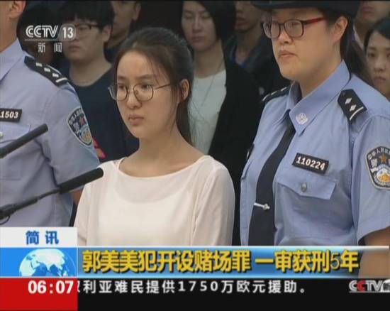 郭美美犯開設(shè)賭場罪一審獲刑5年