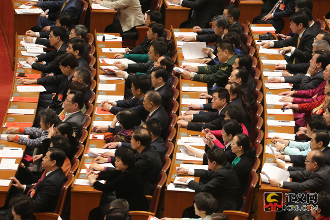 3月15日,第十二屆全國人民代表大會第三次會議在人民大會堂舉行閉幕會。正義網(wǎng)記者 張哲 攝