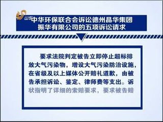 19日,在歷經(jīng)收到舉報(bào)、實(shí)地核查等環(huán)節(jié)后,環(huán)保部主管的社團(tuán)組織中華環(huán)保聯(lián)合會向德州市中級法院提交了民事起訴狀,對德州晶華集團(tuán)振華有限公司超標(biāo)排放大氣污染物且拒不改正的行為,提起公益訴訟。