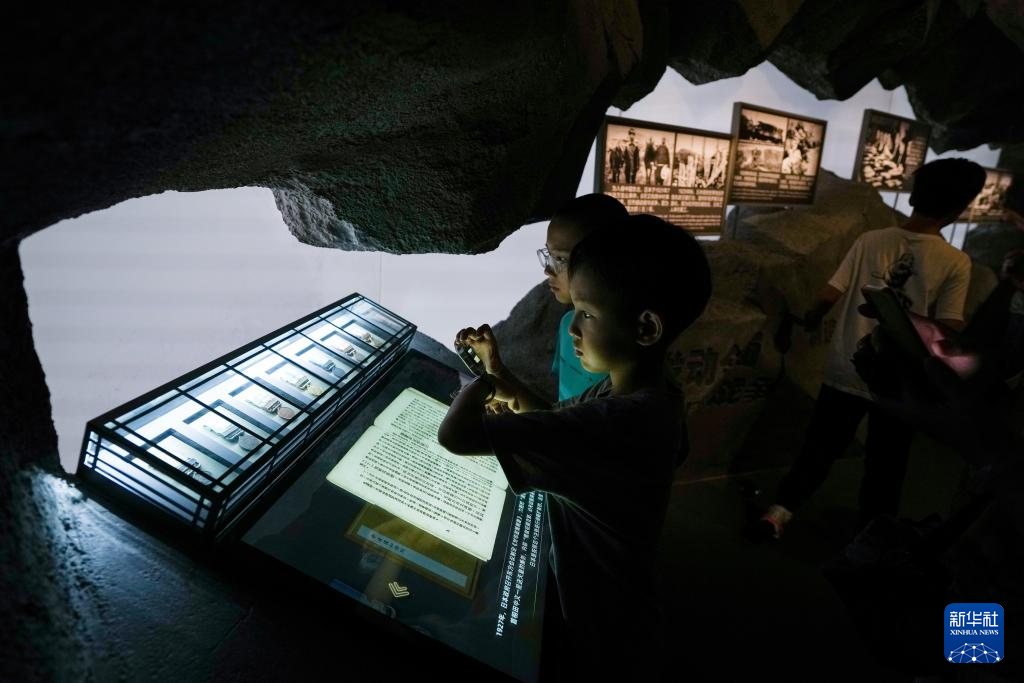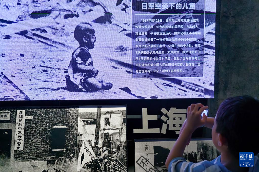 一名小朋友在中國人民抗日戰(zhàn)爭紀(jì)念館《為了民族解放與世界和平》主題展覽參觀(7月22日攝)。新華社記者 鞠煥宗 攝