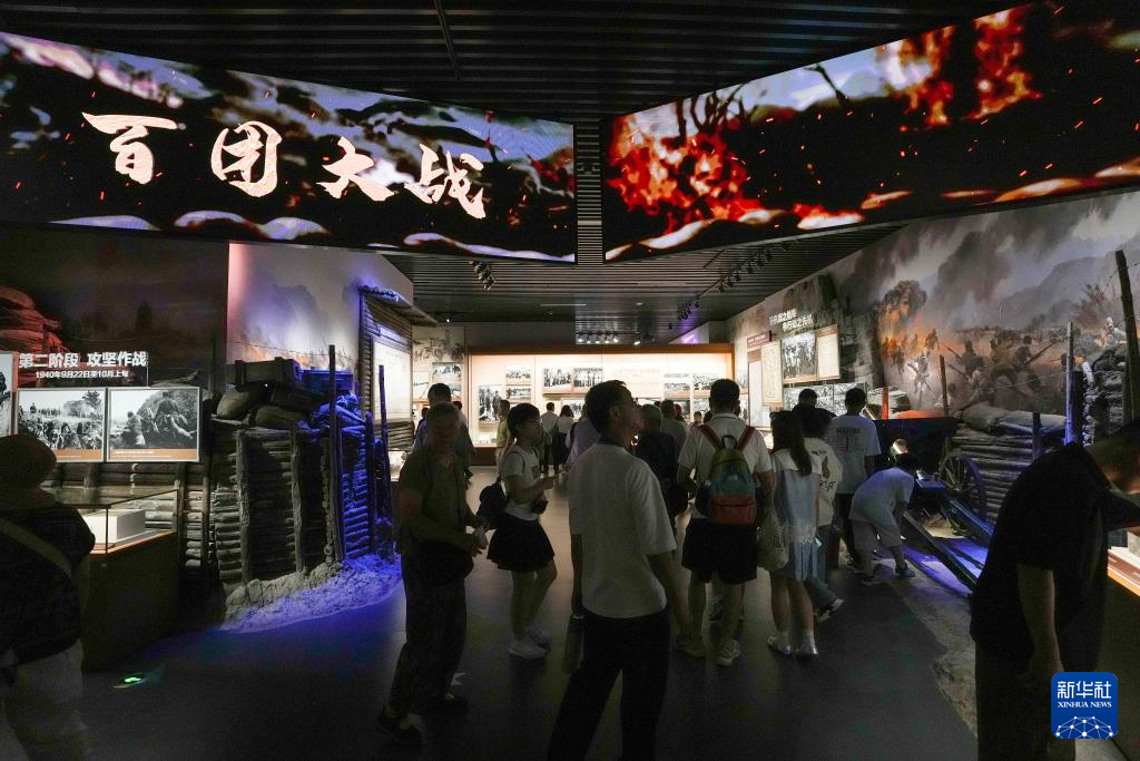 多版本的《論持久戰(zhàn)》;抗日根據(jù)地群眾為部隊縫制的草鞋;燈光、布景、音效再現(xiàn)氣勢磅礴的百團大戰(zhàn)……一件件珍貴的文物和影像,生動再現(xiàn)烽火歲月中國共產(chǎn)黨秉持民族大義、堅守抗戰(zhàn)信念、凝聚人民力量的歷史畫卷。