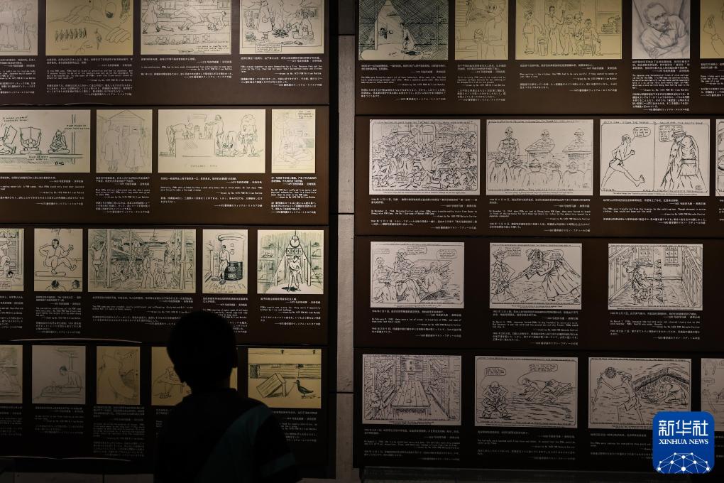 8月5日,參觀者在沈陽二戰(zhàn)盟軍戰(zhàn)俘營舊址陳列館內(nèi)觀看展品。