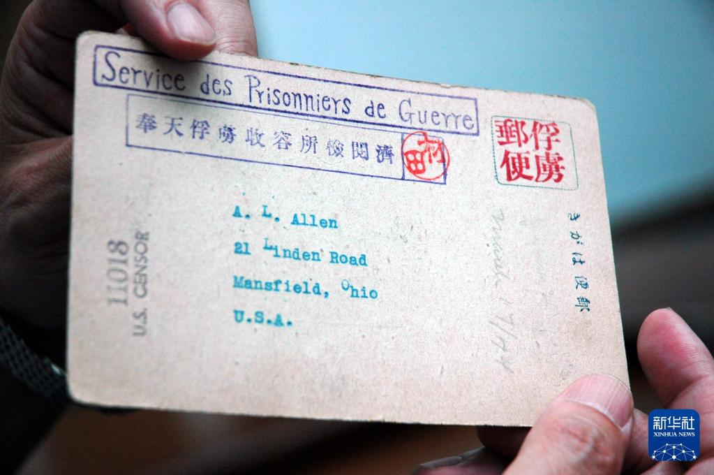 這是當(dāng)年戰(zhàn)俘們寄給親友的實寄明信片(2008年7月31日攝)。64開的明信片上有“俘虜郵便”“奉天俘虜收容所檢閱濟(jì)”的明顯印記,這些私人信件當(dāng)年要經(jīng)過日軍的嚴(yán)格審查,蓋上戰(zhàn)俘營司令官松田的名章后才能寄出。2008年7月31日,200余件二戰(zhàn)時期美國老兵珍藏的文物史料,被捐贈給沈陽二戰(zhàn)時期盟軍戰(zhàn)俘營舊址紀(jì)念館。