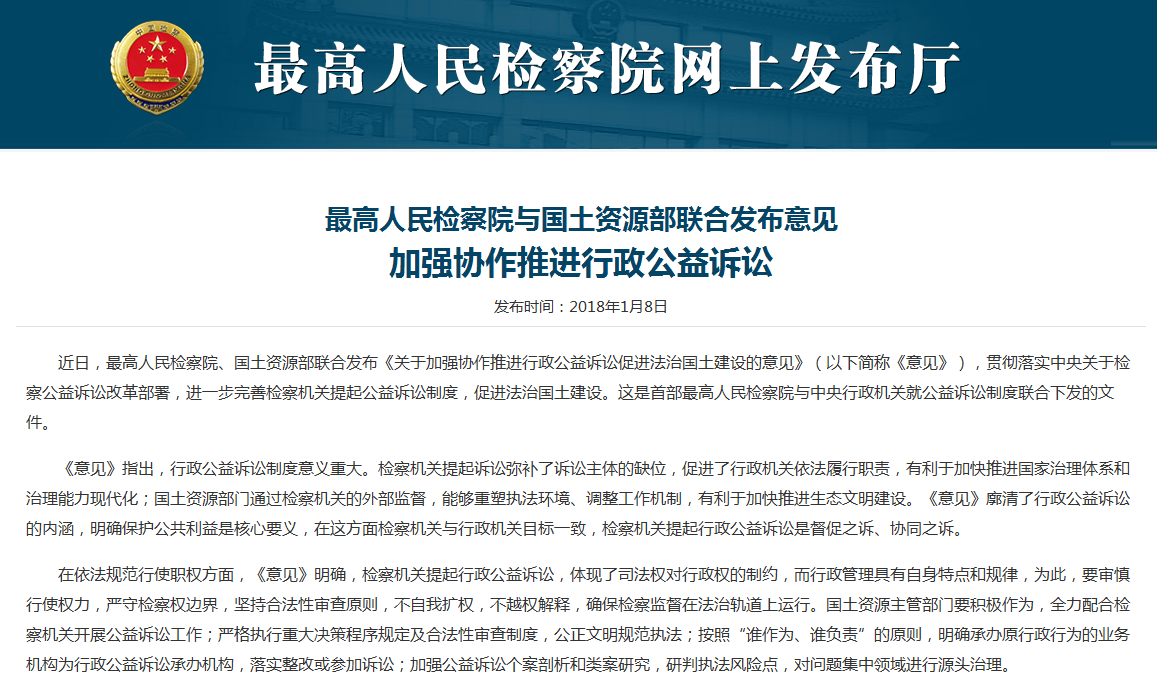 最高檢與國土資源部聯(lián)合發(fā)文推進行政公益訴訟