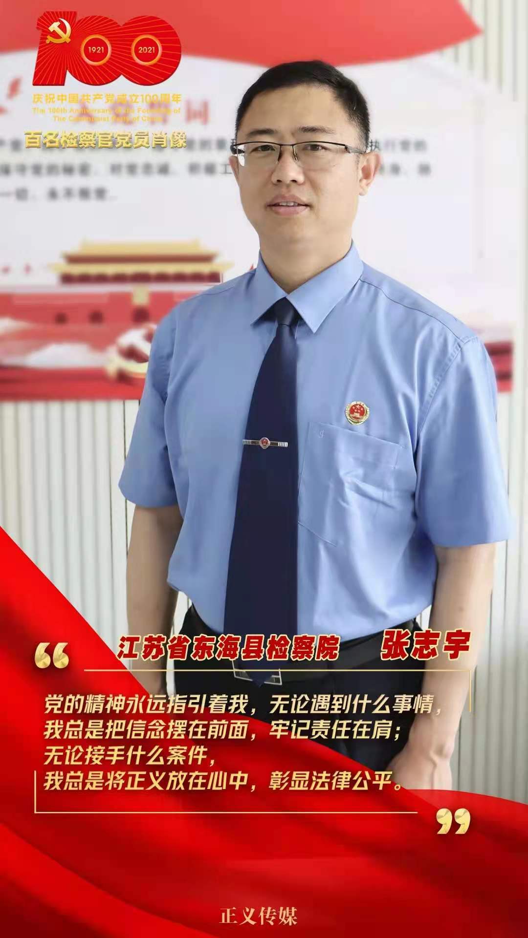 張志宇,江蘇省東?h檢察院檢委會專職委員,年齡47歲,黨齡20年。