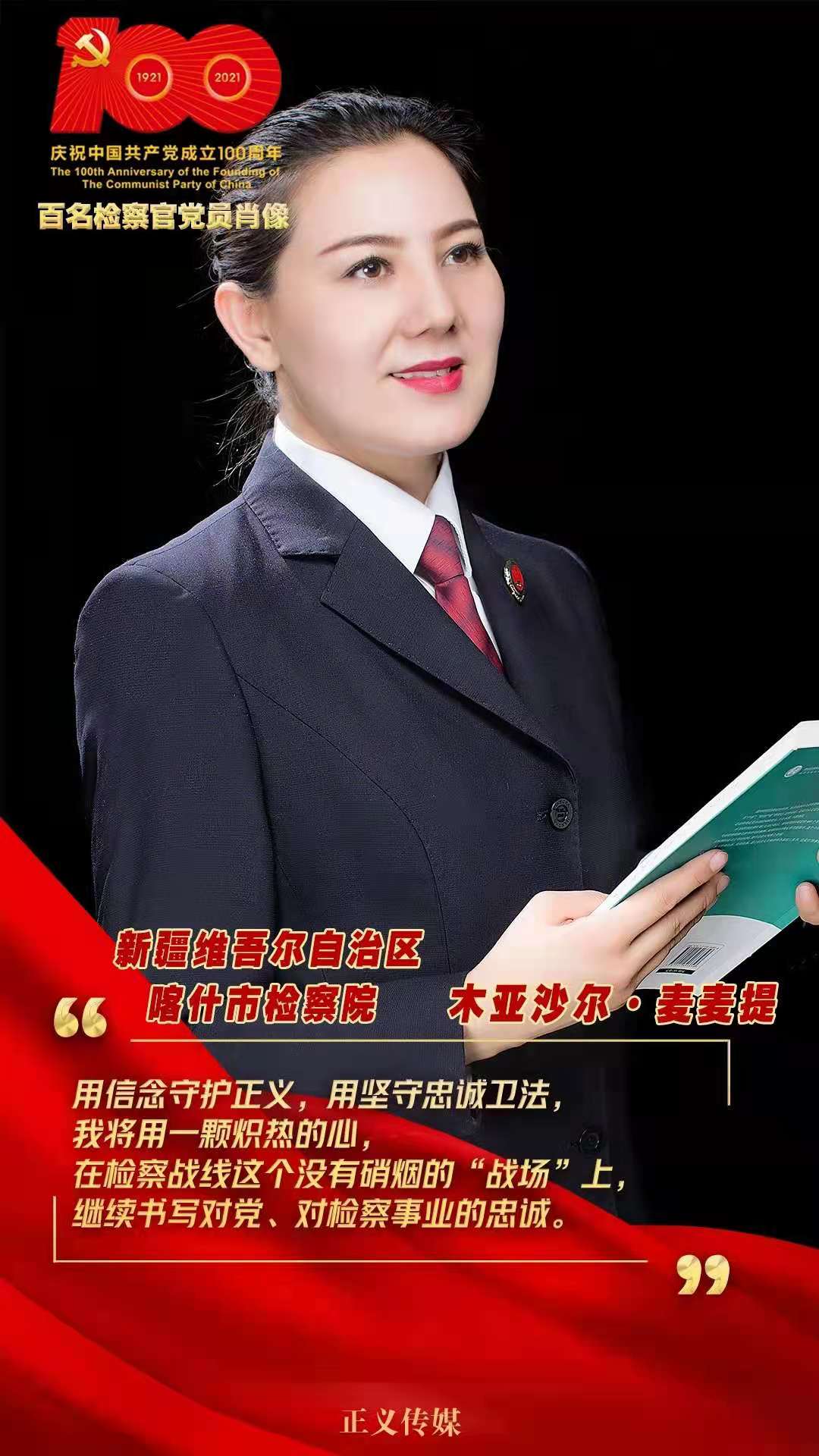 木亞沙爾·麥麥提,新疆維吾爾自治區(qū)喀什市檢察院黨組成員、副檢察長,年齡38歲,黨齡11年。