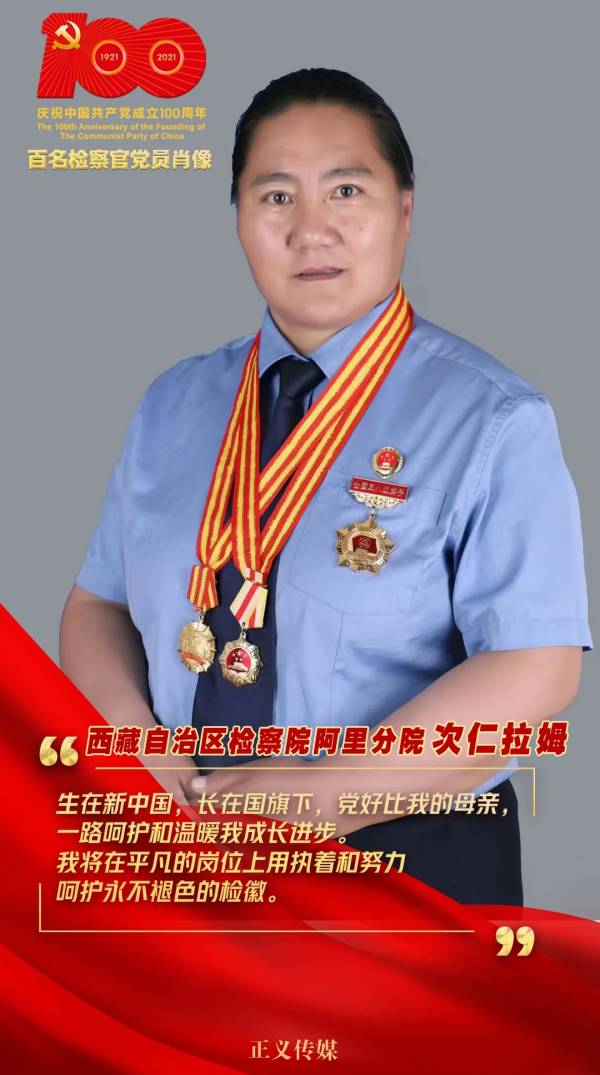 從檢32年來,次仁拉姆始終堅守在平均海拔4500米以上的阿里,把法治的種子灑向雪域高原,把愛和溫暖傳遞到牧區(qū)的每一個角落。次仁拉姆先后被授予全國五一勞動獎?wù)隆⑷珖思t旗手、西藏自治區(qū)先進駐村工作隊員、自治區(qū)最美格;、全區(qū)十佳女干警等榮譽稱號,并榮立個人一等功。
