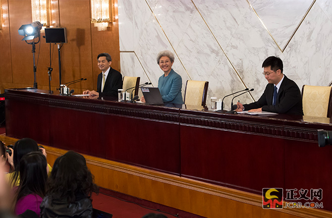 3月4日,十二屆全國人大四次會議在人民大會堂舉行新聞發(fā)布會,大會發(fā)言人傅瑩回答中外記者的提問。本次發(fā)布會共有18名中外記者提問,其中11位記者提問涉及法治話題,占提問總數(shù)的61%。民法典的編纂工作、慈善法、推進(jìn)全面依法治國、全國人大審議境外非政府組織管理法草案、全國人大立法、反腐敗、《中華人民共和國反家庭暴力法》、稅收法、涉黃涉毒或者微博禁言的演員、政府依法行政、《大氣污染防治法》等。正義網(wǎng)記者程丁攝
